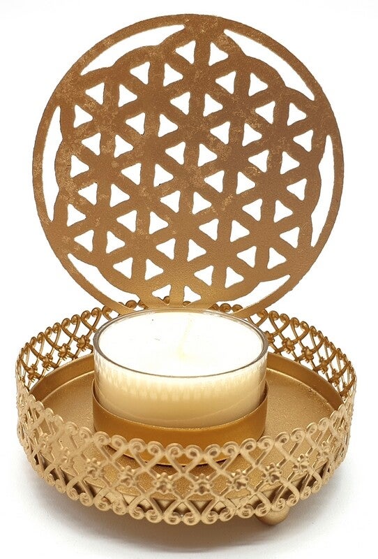 Bougeoir en métal avec réflexion murale pour une ambiance zen.